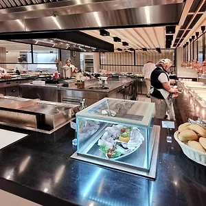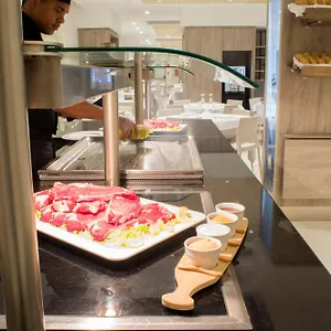 En Este hotel de 4 estrellas, Aparthotel Acualandia, los huéspedes podrán disfrutar de una variada y equilibrada oferta gastronómica en su restaurante buffet, donde se sirven platos de la cocina española e internacional. Para aquellos que prefieran comer fuera, en las cercanías del hotel pueden encontrar numerosos restaurantes y bares.
